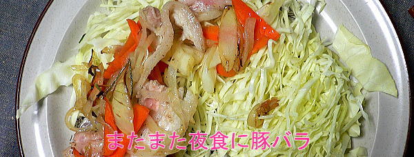 朝、と言ってももう1時近くですが、昨夜の鉄板の脂の始末でナスや菜っ葉を昨夜買ってきた豚バラブロックと焼いて食べました。 | |
